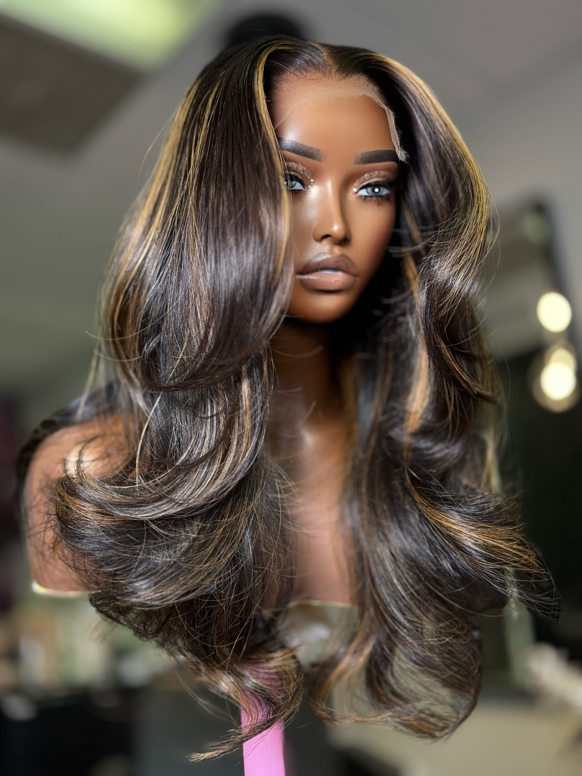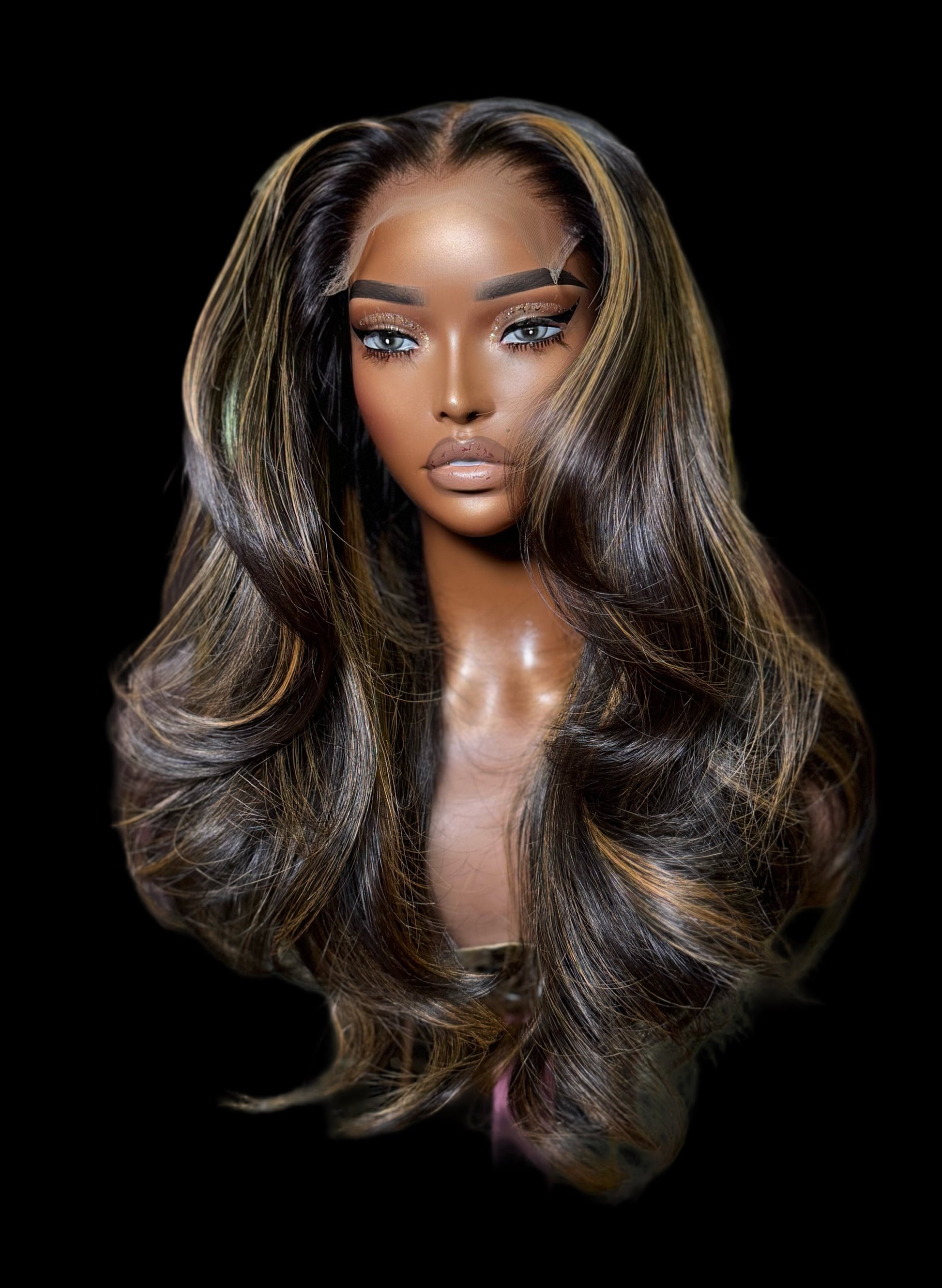 Natural Black with Honey Blonde Highlights