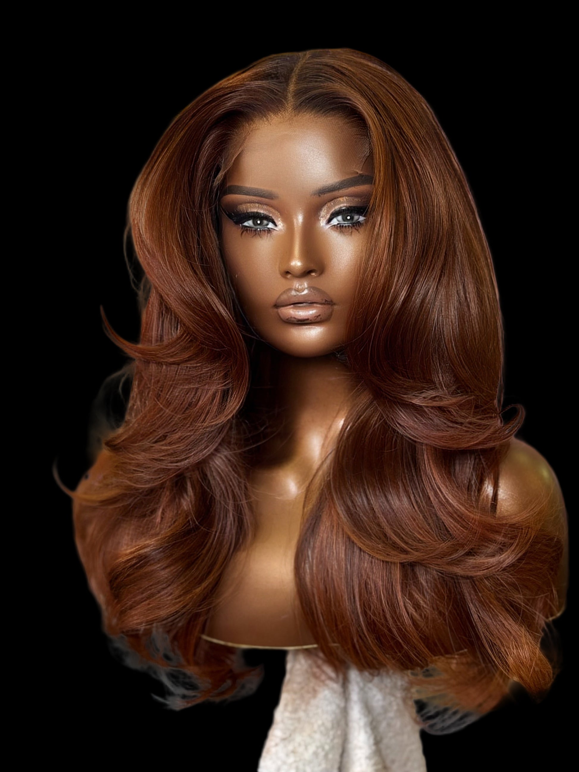 All wigs are styled with long layers and loose curls. Please specify any other styling preferences (eg. bangs, defined layers, tight curls, etc)