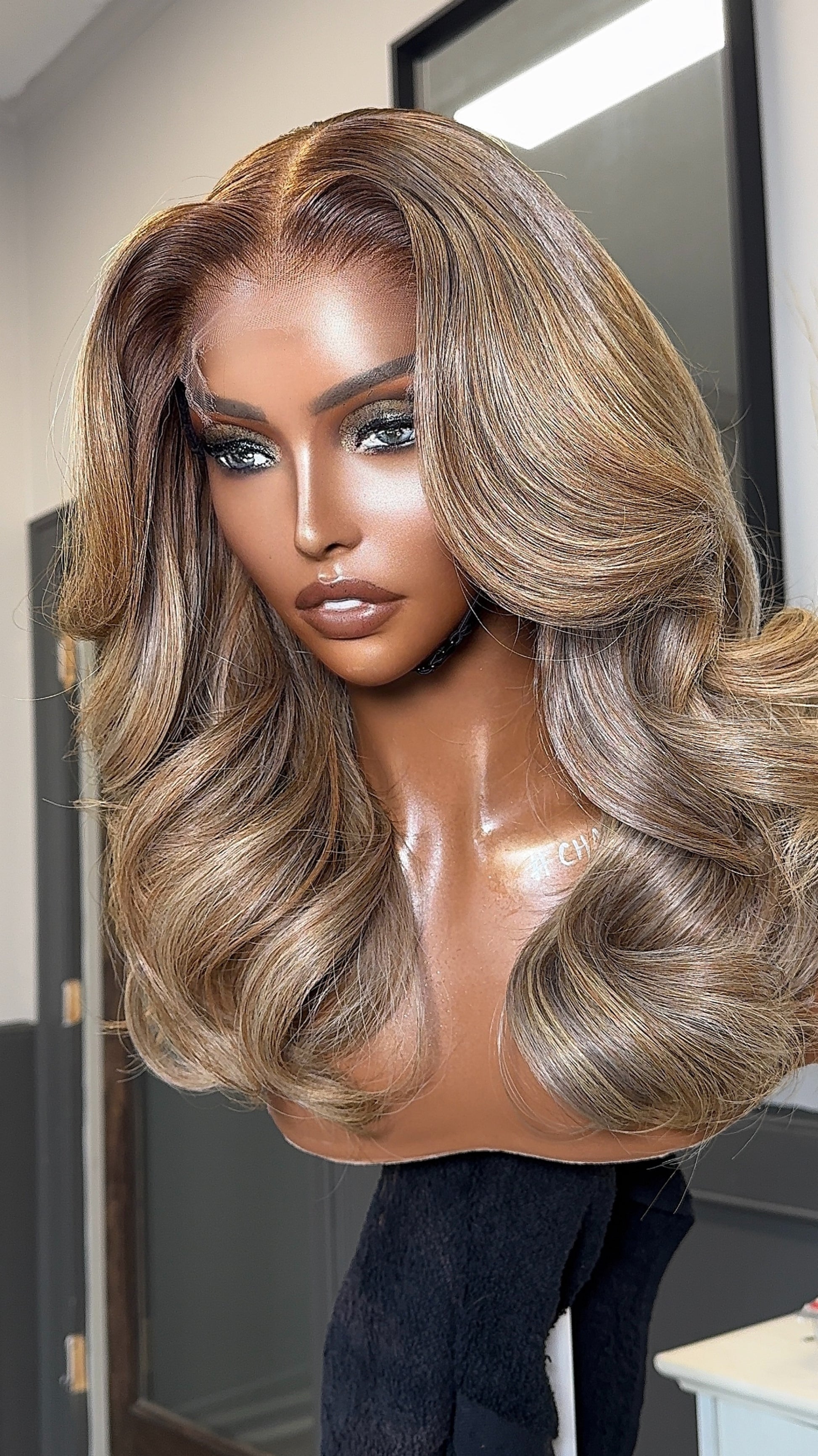 All wigs are styled with long layers and loose curls. Please specify any other styling preferences (eg. bangs, defined layers, tight curls, etc)