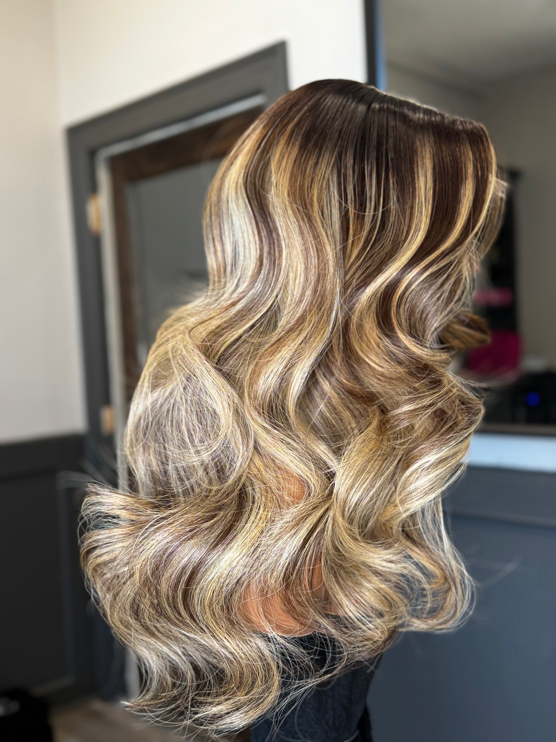 All wigs are styled with long layers and loose curls. Please specify any other styling preferences (eg. bangs, defined layers, tight curls, etc)